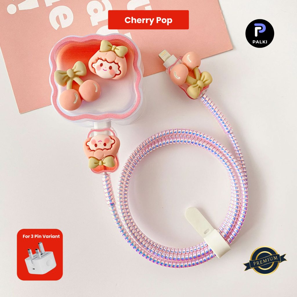 3 Pin Premium – iPhone Charger Cover 5 Piece Set – Cherry Pop