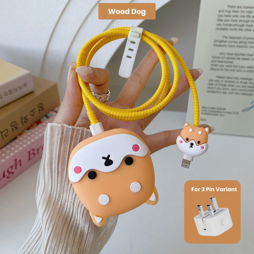 3 pin Protector – iphone 20 Watts charger and cable protector – Wood Dog