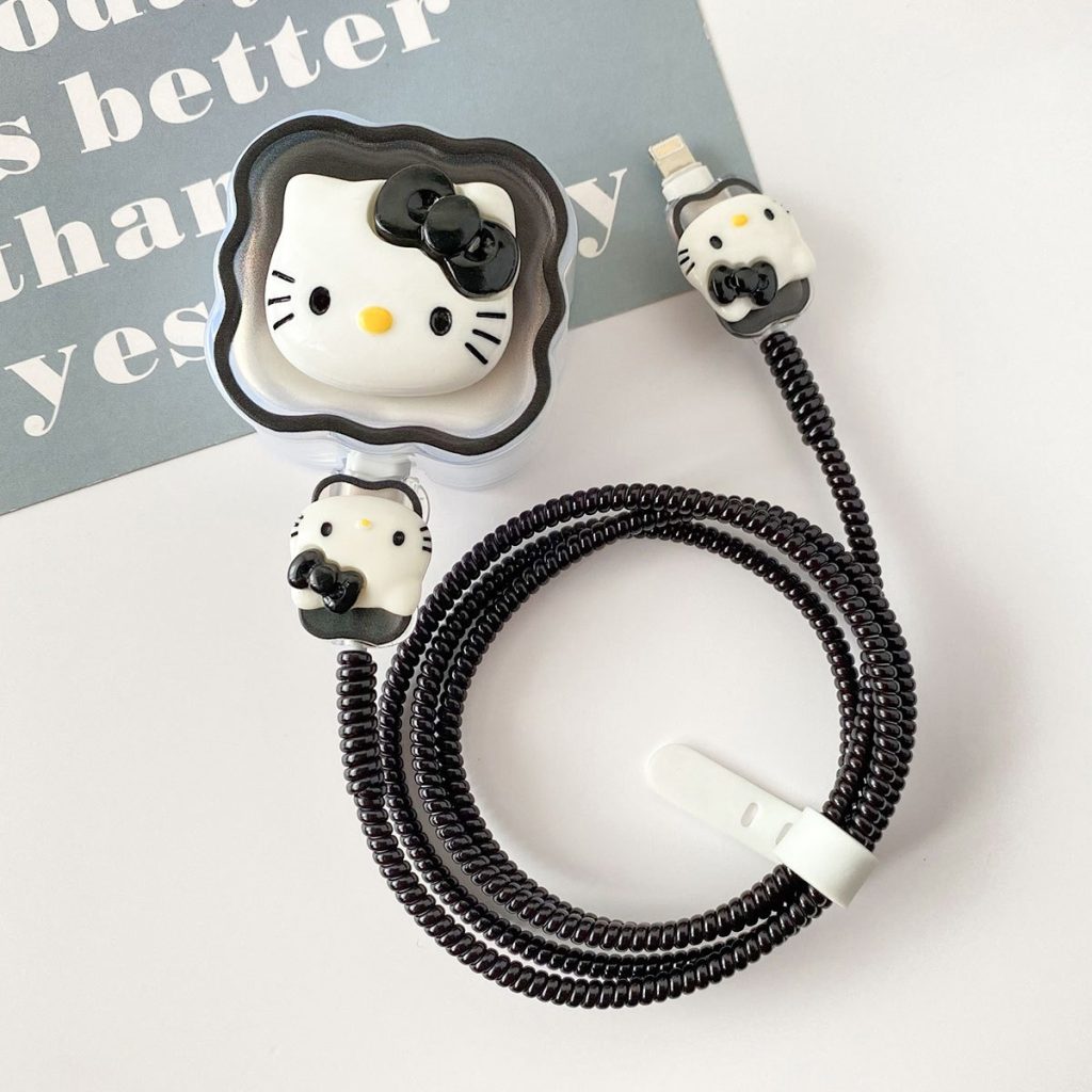 3 Pin Premium – iPhone Charger Cover 5 Piece Set – Hello Kitty Black