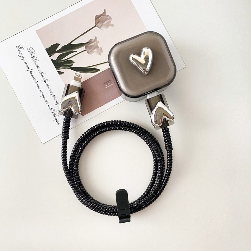3 Pin Premium – iPhone Charger Cover 5 Piece Set – Silver Heart
