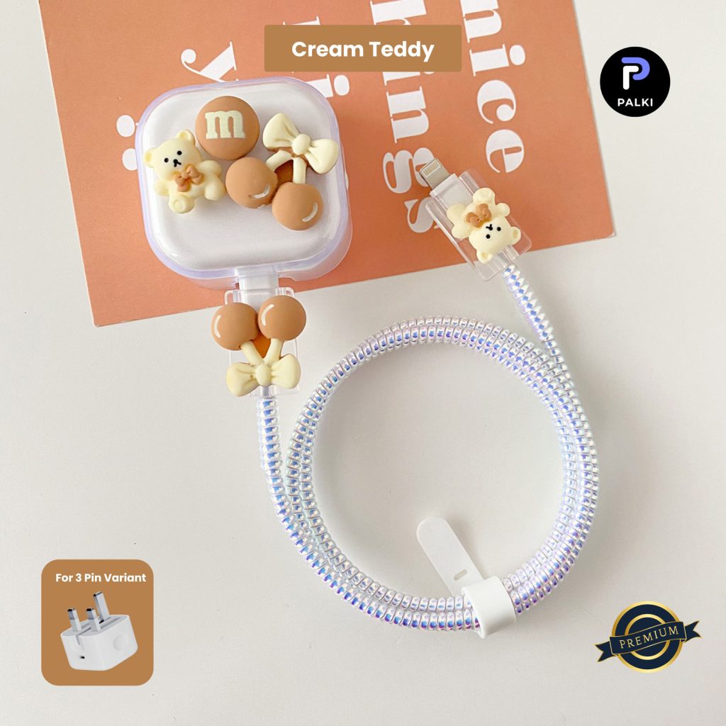 3 Pin Premium – iPhone Charger Cover 5 Piece Set – Cream Teddy