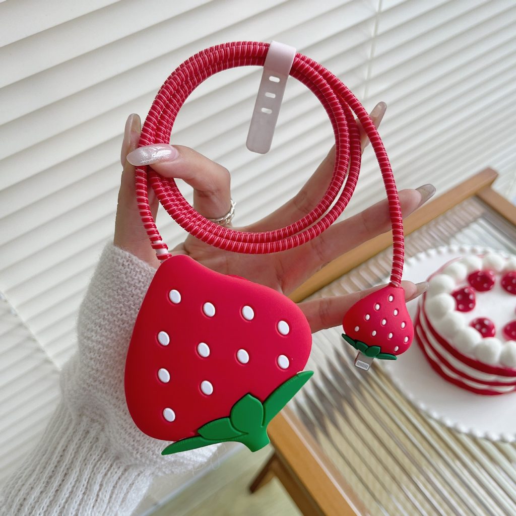 3 pin Protector – iphone 20 Watts charger and cable protector – Strawberry