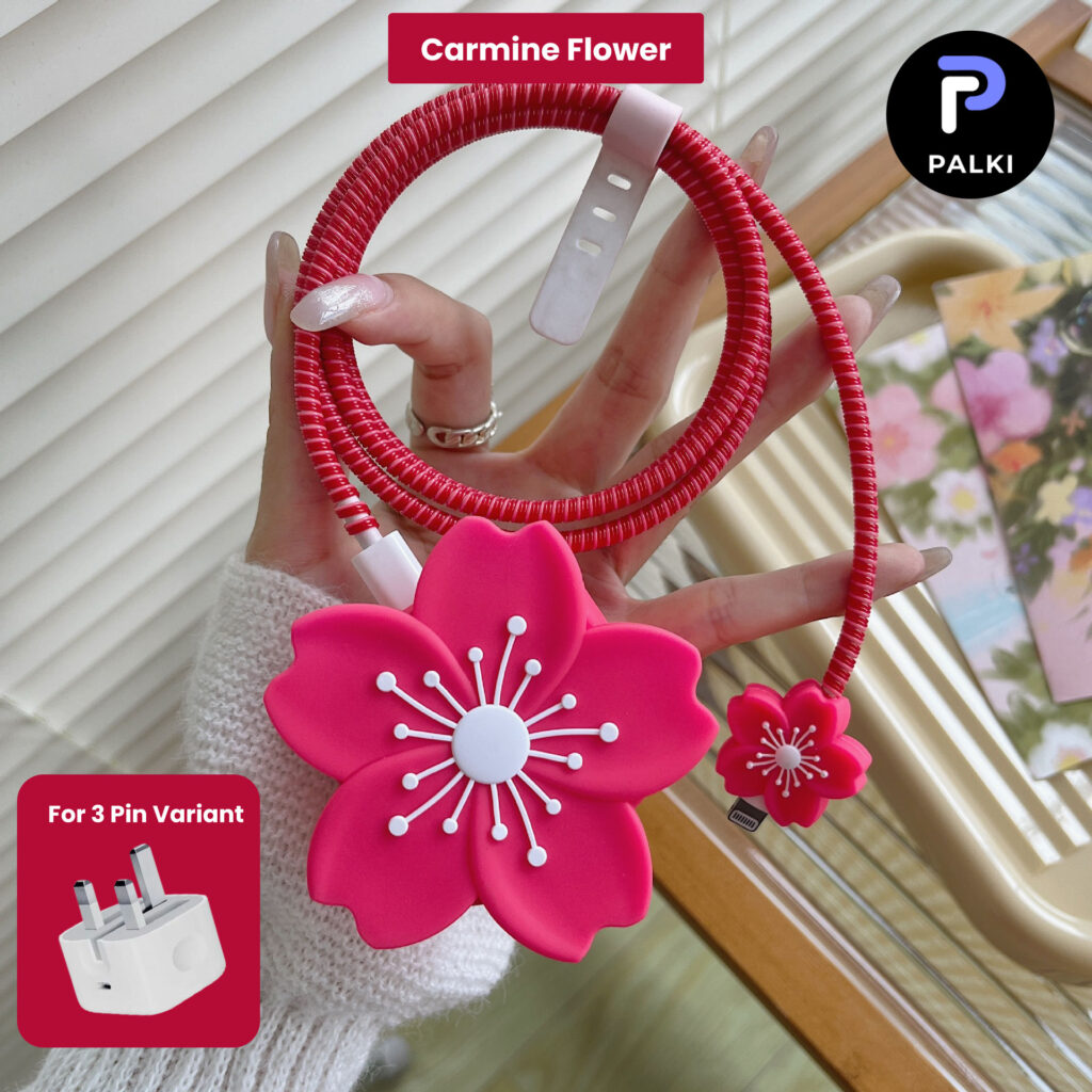 3 pin Protector – iphone 20 Watts charger and cable protector – Carmine Flower