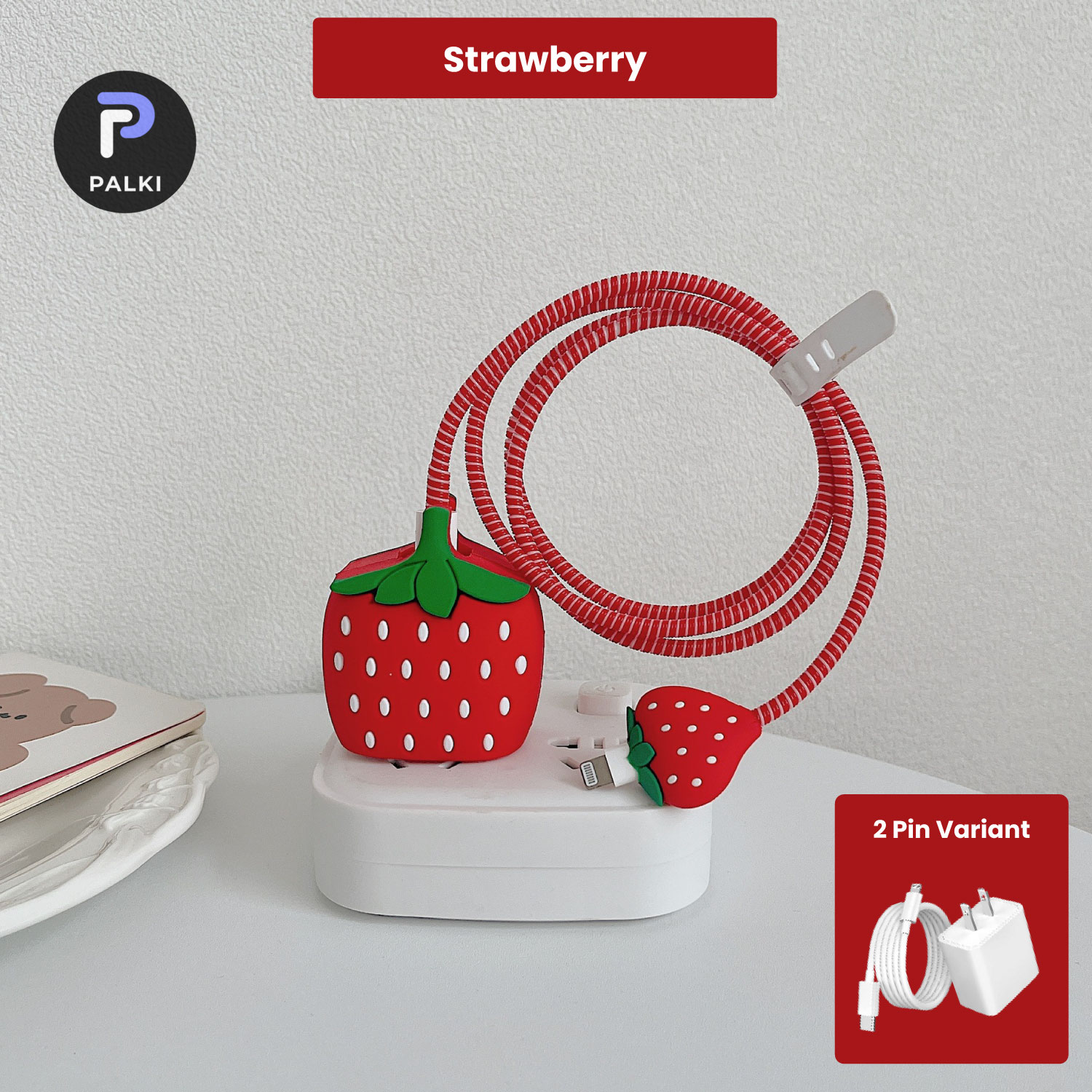 2 Pin Protector – 4 in 1 iphone charger and cable cover – Strawberry