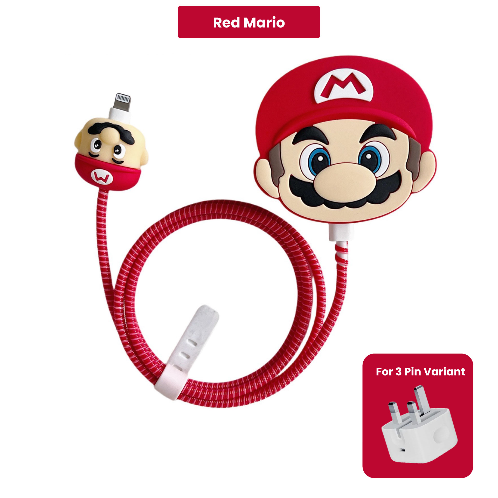 3 pin Protector – iphone 20 Watts charger and cable protector – Red Mario